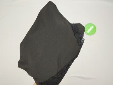 Czarna damska bluzka bez rękawów z dekoltem w serek zdobionym beżową, ażurową koronką. Prosty, lekko luźny krój, miękko układający się materiał. - Rozmiar: XXL (z metki) - Skład: 100% poliester - ...