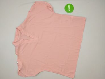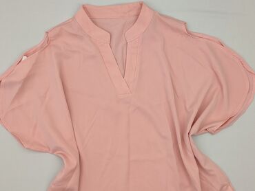 Bluzka damska w kolorze pudrowego różu. - Krój oversize, luźny i zwiewny - Dekolt w kształcie litery V z szeroką listwą - Krótkie, szerokie rękawy typu kimono - Długość do bioder - Lekka, cienka t...