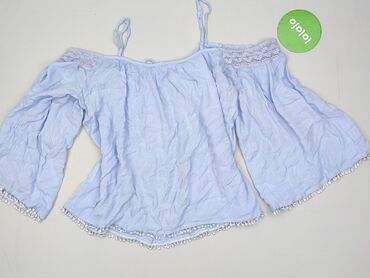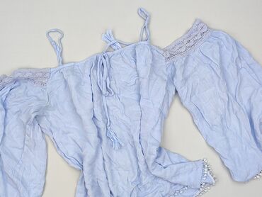 Bluzka hiszpanka dla dziewczynki - Kolor: jasny niebieski/melanż jeansowy - Krój: odkryte ramiona (hiszpanka) z elastyczną gumką w dekolcie oraz na dole - Rękawy: krótkie, z delikatnymi wiązaniami...