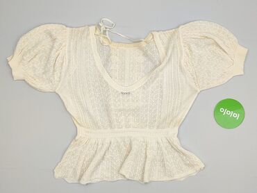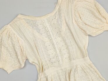 Bluzka damska Orsay, kolor ecru/łamana biel. - Fason: lekko taliowana, z dekoltem w kształcie litery V z przodu i delikatnym V również z tyłu. - Rękawy: półdługie, bufiaste, z ażurową koronką o ge...