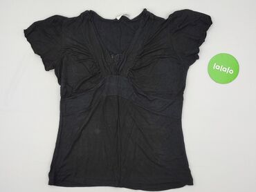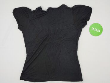 Bluzka damska Yessica, rozmiar L - Kolor: czarny - Krój: luźny, oversize z krótkim rękawem typu kimono - Dekolt: w serek z ozdobnym wycięciem i paseczkiem z tyłu - Detale: pionowy, ażurowy pasek n...