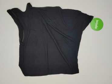 Czarna damska bluzka Reserved, rozmiar 36. - Krój prosty, z delikatnie przedłużonym dołem i krótkim rękawkiem typu cap. - Okrągły dekolt. - Z przodu pas z półprzezroczystej tkaniny ozdobiony rzęde...