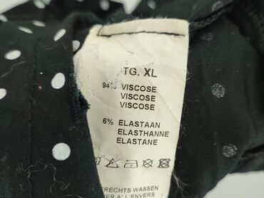 Czarna bluzka damska w białe, nieregularne kropki. - Krój: luźny, koszulowy, z krótkim rękawem i kołnierzykiem. - Zapięcie: rząd guzików z przodu. - Dół lekko zaokrąglony. - Materiał: zwiew...