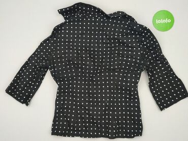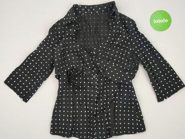 Czarna bluzka w białe groszki, damska, rozmiar S (small). - Fason: dopasowany do talii, delikatne marszczenia z przodu, lekko falujący dół. - Dekolt: w kształcie litery V. - Rękawy: długie. ...