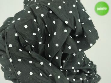 Czarna bluzka damska marki Esmara, wykonana z lekkiego, półprzezroczystego szyfonu z delikatnym wzorem w groszki. Posiada wysoki kołnierzyk z marszczeniem i wiązaniem przy dekolcie, które można reg...