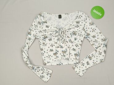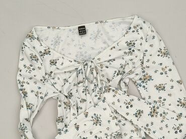 Bluzka damska SHEIN - Model: krótki top z wiązaniem na przodzie - Dekolt: kwadratowy - Rękawy: krótkie, lekko bufiaste z delikatną gumką przy krawędzi - Wzór: kwiatowy na białym tle (odcienie różu...