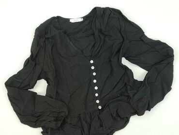 Czarna bluzka Reserved – rozmiar XS - materiał: merceryzowana bawełna (etykieta “Mercerized Cotton”) - krój: lekko pudełkowy, długość do bioder - dekolt: okrągły - rękawy: krótkie, bufiaste z szero...