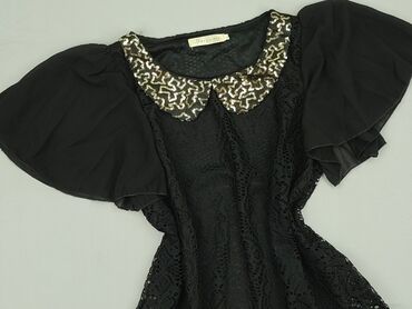 Czarna koronkowa bluzka damska H&M - Rozmiar z metki: M (EUR/US/CA/CN/MX M) - Fason: prosta, z krótkim rękawem; okrągły dekolt, z tyłu niewielkie rozcięcie zapinane na guzik - Materiał: - wierzc...