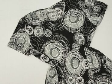 Bluzka/tunika So bin ich - Fason: kopertowy z zakładkami i drapowaniem w talii, lekko asymetryczny dół - Dekolt: w kształcie litery V - Rękawy: krótkie, luźne - Wzór: czarno‑biały, gęste owalne „k...