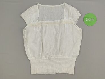 Bluzka damska z ażurowej bawełny, rozmiar S (EUR/US S). - Kolor: biały, haft angielski z drobnymi wycięciami i subtelnym, wytłaczanym wzorem. - Krój: prosty, lekko luźny. - Rękawy: 3/4, bufiaste...
