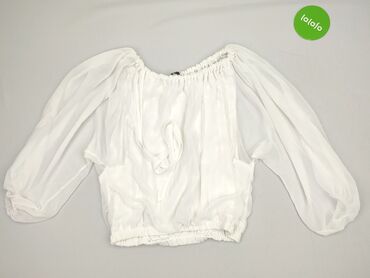 Biała, lniana bluzka hiszpanka ZARA - Krój: krótka bluzka typu hiszpanka (crop), z dekoltem opuszczanym na ramiona - Rękawy: krótkie, bufiaste - Zapięcie: rząd małych guzików z przodu - Wykończeni...