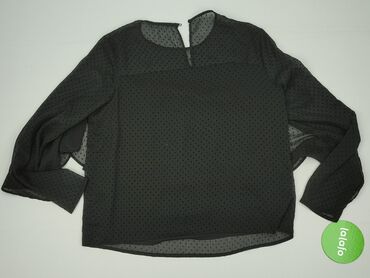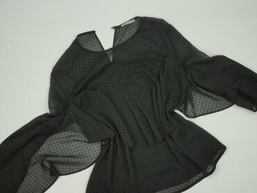 Bluzka damska ORSAY, kolor czarny. - Fason: prosty, lekko dopasowany, długość do bioder - Rękawy: długie, bufiaste, z półprzezroczystej siateczki ozdobionej flockiem w kropki - Góra: prześwitująca...Stan: