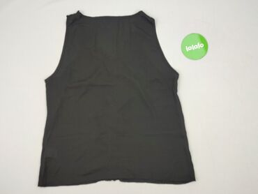 Czarna damska bluzka bez rękawów - Krój: prosty, lekko dopasowany, delikatnie opadające ramiona (cap sleeves) - Dekolt: zaokrąglony z wstawką w kształcie litery V - Rozmiar z metki: XL - Materiał:...