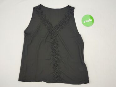 Damska bluzka bez rękawów, czarna - Rozmiar: XL (metka) - Fason: prosty, bez rękawów, z małymi rozcięciami po bokach u dołu - Dekolt: w kształcie litery V z ozdobną aplikacją/koronką w trójkątnym ...