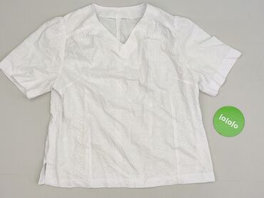 Biała ażurowa bluzka damska z haftem angielskim - Krój: luźny, prosta linia, lekko rozszerzany dół - Dekolt: V - Rękaw: krótki - Zapięcie: guziki z przodu (częściowe) - Tkanina: przewiewna bawełna...Stan: