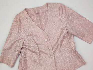 Rękaw 3/4Różowa damska bluzka/żakiet z fakturowanej tkaniny