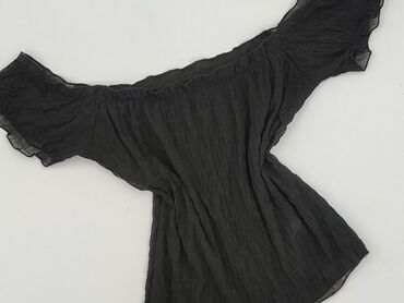 Bluzka damska typu hiszpanka, kolor czarny. - Fason: luźny, z odkrytymi ramionami - Dekolt/wykończenie: elastyczna gumka wokół dekoltu, umożliwia noszenie „off shoulder” - Rękawy: krótkie, ażurowe...