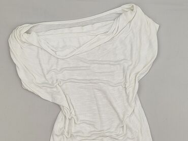 Biała koszulka/bluzka z krótkim rękawem, rozmiar M. - Krój: prosta linia, okrągły dekolt bez ściągacza, zapięcie na guziki wzdłuż całego przodu. - Rękawy: krótkie, lekko luźne. - Materiał: lekko...