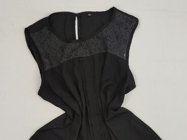 Czarna bluzka damska bez rękawów z ozdobną koronką przy dekolcie i na plecach (motyw kwiatowy, w kształcie litery V). - Krój: luźniejszy, z krótkimi rękawkami typu cap. - Dekolt: okrągły z przodu...Stan: