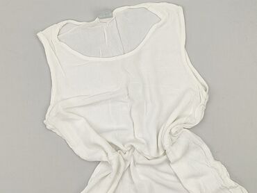 Biała damska bluzka bez rękawów - Krój: luźny, z opuszczonymi ramionami (cap sleeves), lekko wydłużony tył z zaokrąglonym dołem - Dekolt: w kształcie litery V z krótką stójką - Rozmiar: XL (na met...
