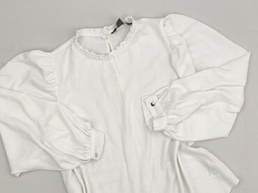 Bluzka damska Primark - Kolor: biały z czarną lamówką przy dekolcie - Krój: luźny, z dekoltem w kształcie litery V - Rękaw: długi, mankiety zapinane na dwa guziki - Materiał: lekka, zwiewna tkanin...