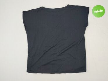 Czarna bluzka damska UeFASHION - Rozmiar: L (metka) - Fason: luźny, lekko taliowany - Rękawy: krótkie typu kimonowego - Dekolt: miękko układany, lekko drapowany - Materiał: cienka, elastyczna dzia...