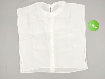 Biała bluzka koszulowa z krótkim rękawem - Krój: prosta, lekko luźna sylwetka; rozcięcia po bokach u dołu dla większej swobody. - Zapięcie: na guziki z przodu (plisa zakrywająca zapięcie). - Kołni...