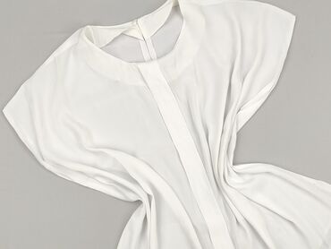Biała bluzka koszulowa z krótkim rękawem - Krój: prosta, lekko luźna sylwetka; rozcięcia po bokach u dołu dla większej swobody. - Zapięcie: na guziki z przodu (plisa zakrywająca zapięcie). - Kołni...Stan: