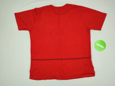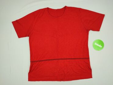 Czerwona bluzka damska z krótkim rękawem i zapięciem na guziki - Krój: lekko pudełkowy, prosty, z delikatnym dekoltem w kształcie litery V - Zapięcie: listwa z przodu na pięć materiałowych guzików...