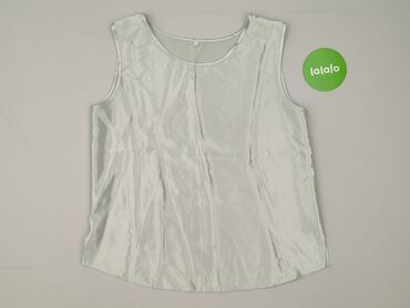 Elegancka damska bluzka bez rękawów z połyskującego, satynowego materiału w kolorze śmietankowej bieli. - Krój: prosty, swobodny, długość do bioder - Dekolt: okrągły - Ramiona: szerokie ramiączka ...