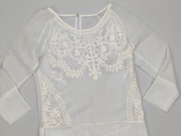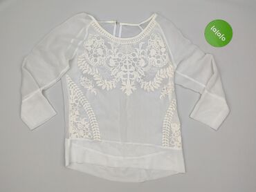 Bluzka damska Szachownica, rozmiar S - Kolor: biały - Fason: zapinana z przodu na cztery guziki, długi rękaw z delikatną gumką przy mankiecie - Dekolt: głęboki V z wstawką z koronki oraz wiązaniem...