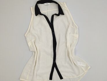 Bluzka bez rękawów New Look, damska - Rozmiar: S - Kolor: ecru/kremowy - Fason: koszulowy, rozpinana z przodu na guziki - Materiał: 100% poliester – lekki, półtransparentny szyfon - Kołnierzyk: oz...Stan: