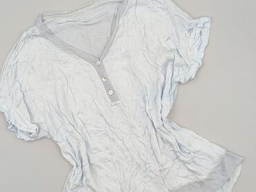 Bluzka damska z krótkim rękawem - Kolor: jasny błękit - Rozmiar: XL (metka widoczna na zdjęciu) - Fason: swobodny, lekko taliowany - Dekolt: w serek z krótką listwą i jednym ozdobnym guzikiem - Ko...