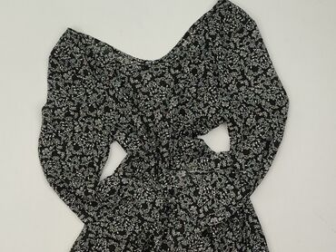 Bluzka damska z krótkim rękawem, w kwiatowy wzór - Rozmiar: S (EU 36, US 4) – na metce - Materiał: 100% poliester - Kolor: czarne tło z pastelowym, różowo-zielonym motywem kwiatowym - Krój: lekko ...