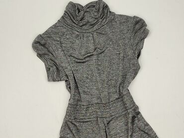 Damska bluzka z połyskiem – rozmiar S - Fason: dopasowany, długi rękaw, stójka; z tyłu zapięcie na mały guzik - Kolor: grafitowy/czarny z drobnym metalicznym połyskiem (brokatowa nić) - Materiał: ...