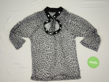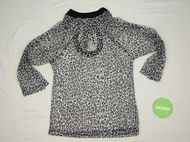 Bluzka damska z miękkiej, elastycznej dzianiny, we wzór zwierzęcy/abstrakcyjny w odcieniach czerni, szarości i srebra. Najważniejsze cechy: - fason z marszczeniami i delikatnym drapowaniem z przod...