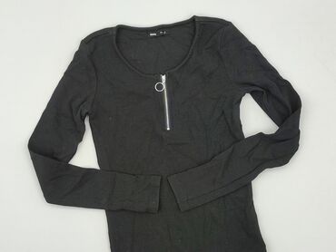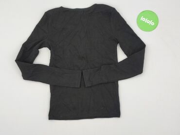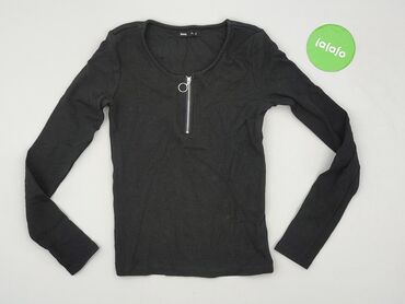 Czarna bluzka damska Sinsay, rozmiar S. - Fason dopasowany, długi rękaw. - Materiał prążkowany, elastyczny: 80% wiskoza, 20% poliamid. - Okrągły dekolt z przodu; na plecach głębsze wycięcie w kszt...