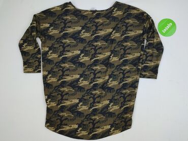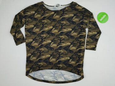 Bluzka damska ONLY, rozmiar S - Fason: dopasowana góra z marszczoną baskinką (peplum), długi rękaw - Wzór: moro/wojskowy w odcieniach zieleni - Dekolt: okrągły - Materiał: cienka, lekko prześwitują...