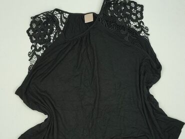 Bluzka damska H&M - Kolor: czarny - Rozmiar z metki: EU XL (US XL, CA XG, MX XG, CN 180/116C) - Fason: luźny, z krótkim rękawem typu cap - Dekolt: w serek z krótką listwą i drobnymi marszczeniami ...