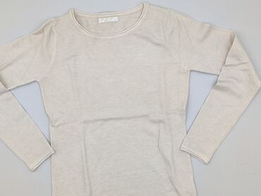 Bluzka damska z długim rękawem - Kolor: jasny beż/ecru - Krój: dopasowany, okrągły dekolt - Dzianina o strukturalnym, „waflowym” splocie – miękka i elastyczna - Materiał: 95% poliester, 5% elastan...Stan: