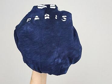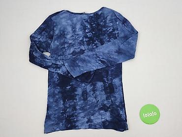 Granatowa bluzka damska z długim rękawem, rozmiar S. - Nadruk w motywy kosmiczne: słońca, księżyce, gwiazdy i chmury w odcieniach niebieskiego i srebra. - Okrągły dekolt. - Prosty fason, lekko wyd...