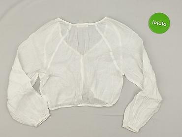 Bluzka damska Sinsay - Kolor: biały (kremowa biel) - Rozmiar z metki: S - Fason: luźny, lekko wydłużony tył (zaokrąglony dół) - Dekolt: w kształcie V z krótką listwą bez guzików - Rękawy: długie z...