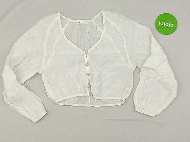 Biała bluzka damska Sinsay, rozmiar S. - Fason: dopasowany, długie rękawy - Dekolt: w kształcie V z krótką listwą guzikową (3 ozdobne guziki z perełką) - Materiał: prążkowana, elastyczna dzianina ...