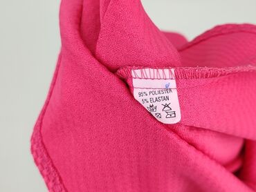 Bluzka damska w intensywnym odcieniu fuksji - Krój: luźny, z lekko zaokrąglonym dołem (dłuższy tył), krótki rękaw - Dekolt: w kształcie litery V z krótką patką - Materiał: cienki, lekko prześwituj...