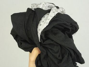 Bluzka damska oversize, czarna, z mieszanych materiałów - Krój: luźny, oversize, z opuszczoną linią ramion - Dekolt: okrągły - Rękaw: krótki - Projekt: górna część z dzianiny, dół i wstawki z lekk...