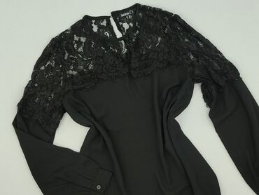 Czarna bluzka damska Janina z długim rękawem - Marka: Janina - Rozmiar z metki: EU 42, IT 46, FR 44 - Fason: dopasowany, prążkowana dzianina - Dekolt: w kształcie litery V z delikatną koronkową la...