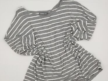 Bluzka damska Janina - Kolor: grafitowy/czarny z delikatnymi, połyskującymi poziomymi paseczkami - Krój: luźniejszy, z opadającym rękawkiem (nietoperz/kimono), dekolt okrągły - Rozmiar z metki: EU...