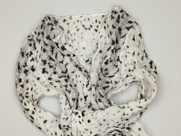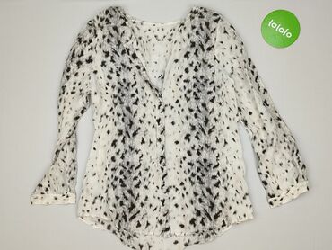 Damska bluzka w panterkę - Krój: lekko luźny, dłuższy, zaokrąglony dół - Rękaw: długi, marszczony przy mankietach - Dekolt: w serek z krótką listwą guzikową (kilka guzików) - Materiał: cienki, zwie...