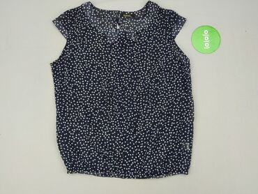 Bluzka damska F&F - Rozmiar: EU 38 (UK 10, US 6) – na metce - Kolor: granatowy - Wzór: kwiatowy, drobne roślinne motywy w odcieniach bieli, różu, żółci i niebieskiego na całej powierzchni - Krój: ...
