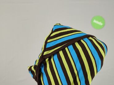 - Wzór: poziome paski w kolorach turkusowym, limonkowym i brązowym; lamówka i troczki w kolorze brązowym